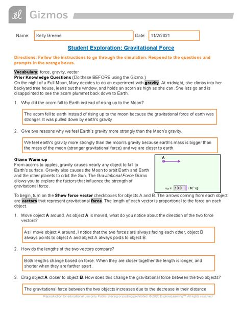 Download student exploration gravitational force answer key Doc Gutenberg